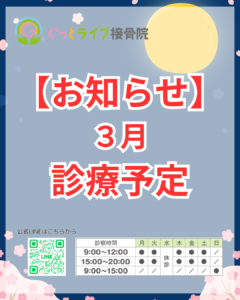 福島県郡山市にある「ぐっとライフ接骨院」です。 明日から10月にです(^^♪ 寒さも強くなってきましたので、早めのケアを行い痛みを予防しましょう!! 〈10月の診療予定について〉 10月13日(月、祝)通常通り9:00~ […]