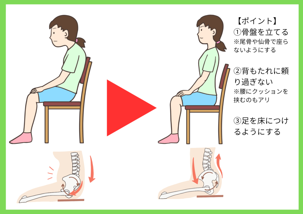 腰の違和感が続いている方は、まずは日常の姿勢と座り方、呼吸から見直し予防に心がけてみてください。