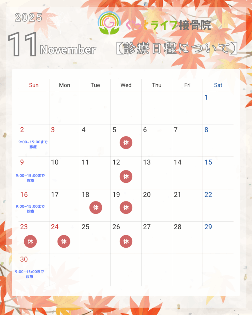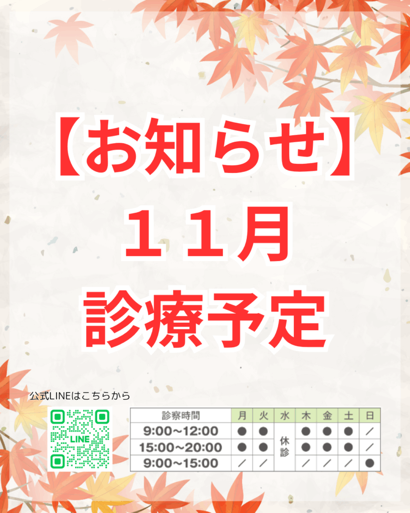 11月も皆様のお体の健康を守れるようにお手伝いさせていただきます。